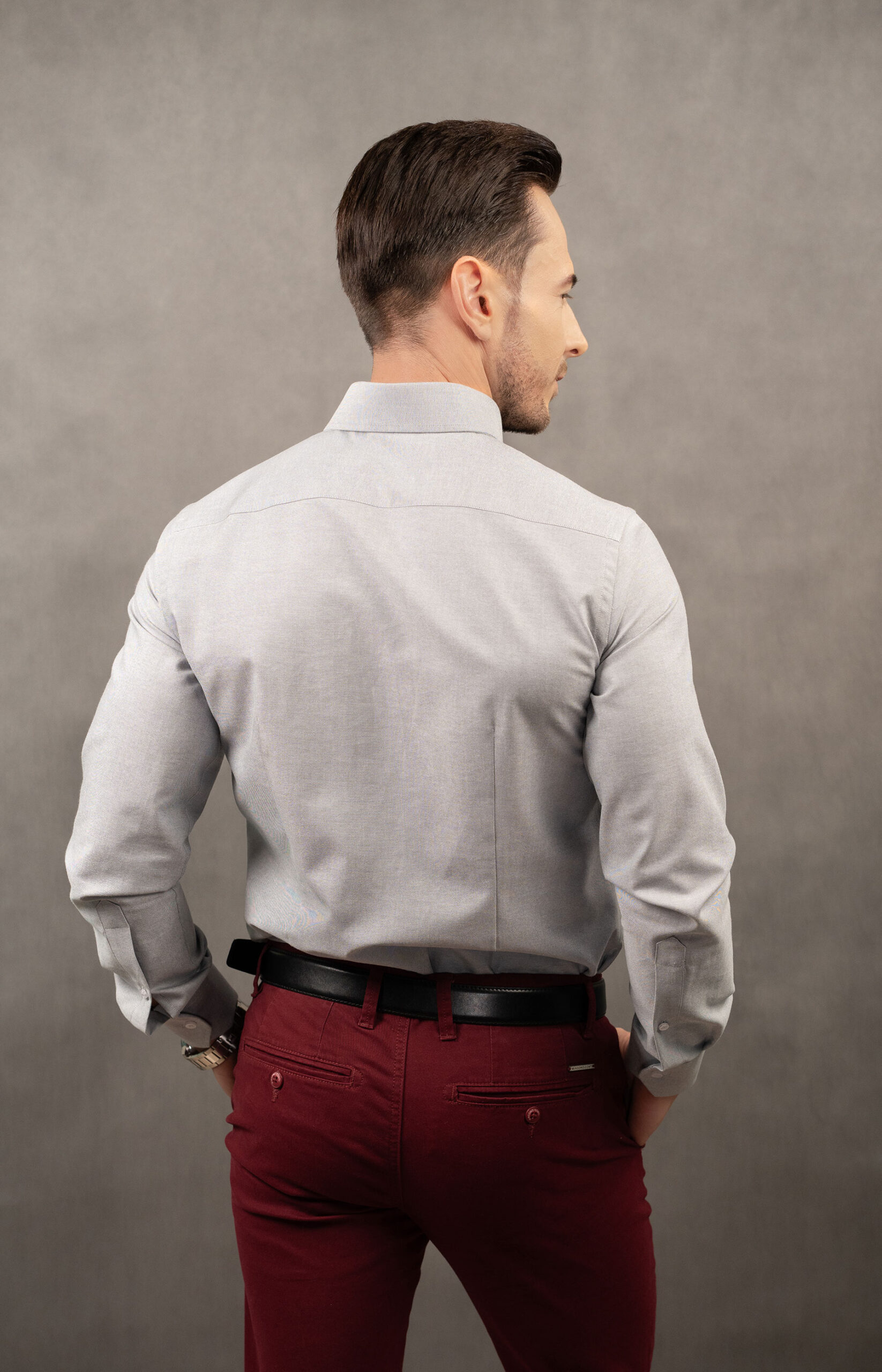 Nasza szara koszula oxford to połączenie najwyższej jakości wykonania i ponadczasowego stylu. Ścięty mankiet nadaje jej subtelnej elegancji, a przeszywane zapięcie podkreśla jej klasyczny charakter. To idealna propozycja dla mężczyzn, którzy cenią komfort i wszechstronność – sprawdzi się zarówno w pracy, jak i na mniej formalnych spotkaniach. Wystarczy podwinąć rękawy, by nadać stylizacji swobodnego wyrazu.